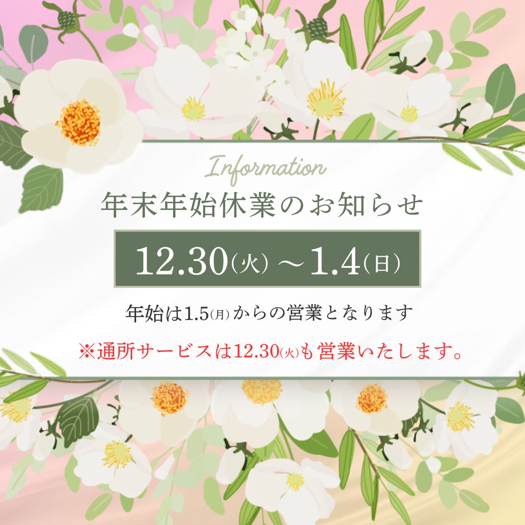 休業期間:2025年12月30日(火)~2026年1月4日(日)