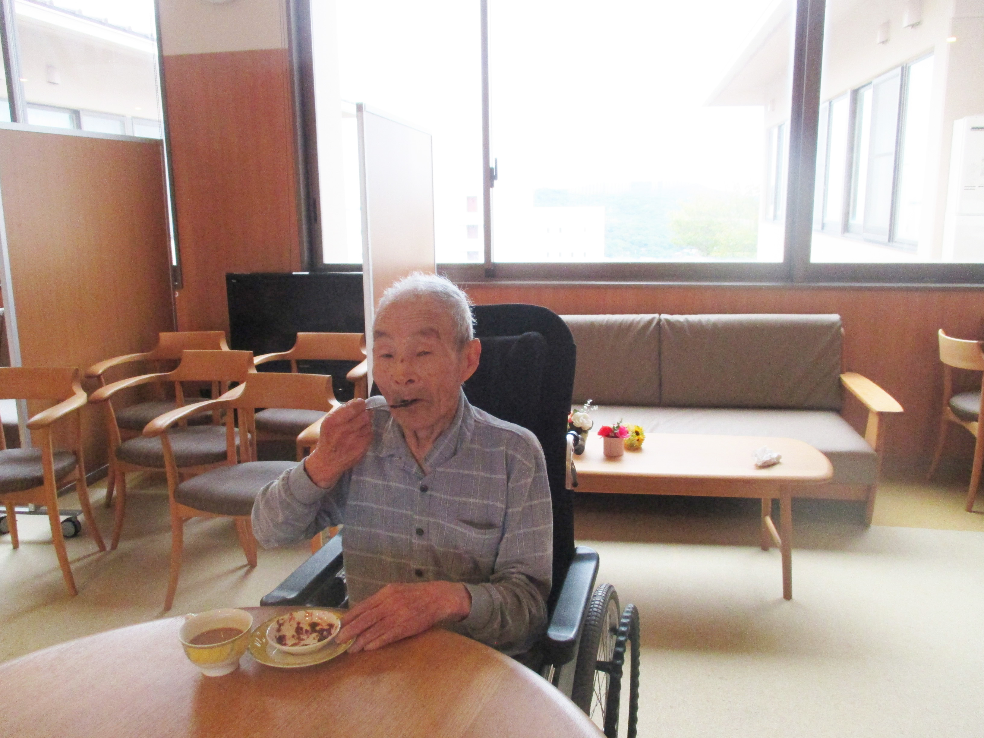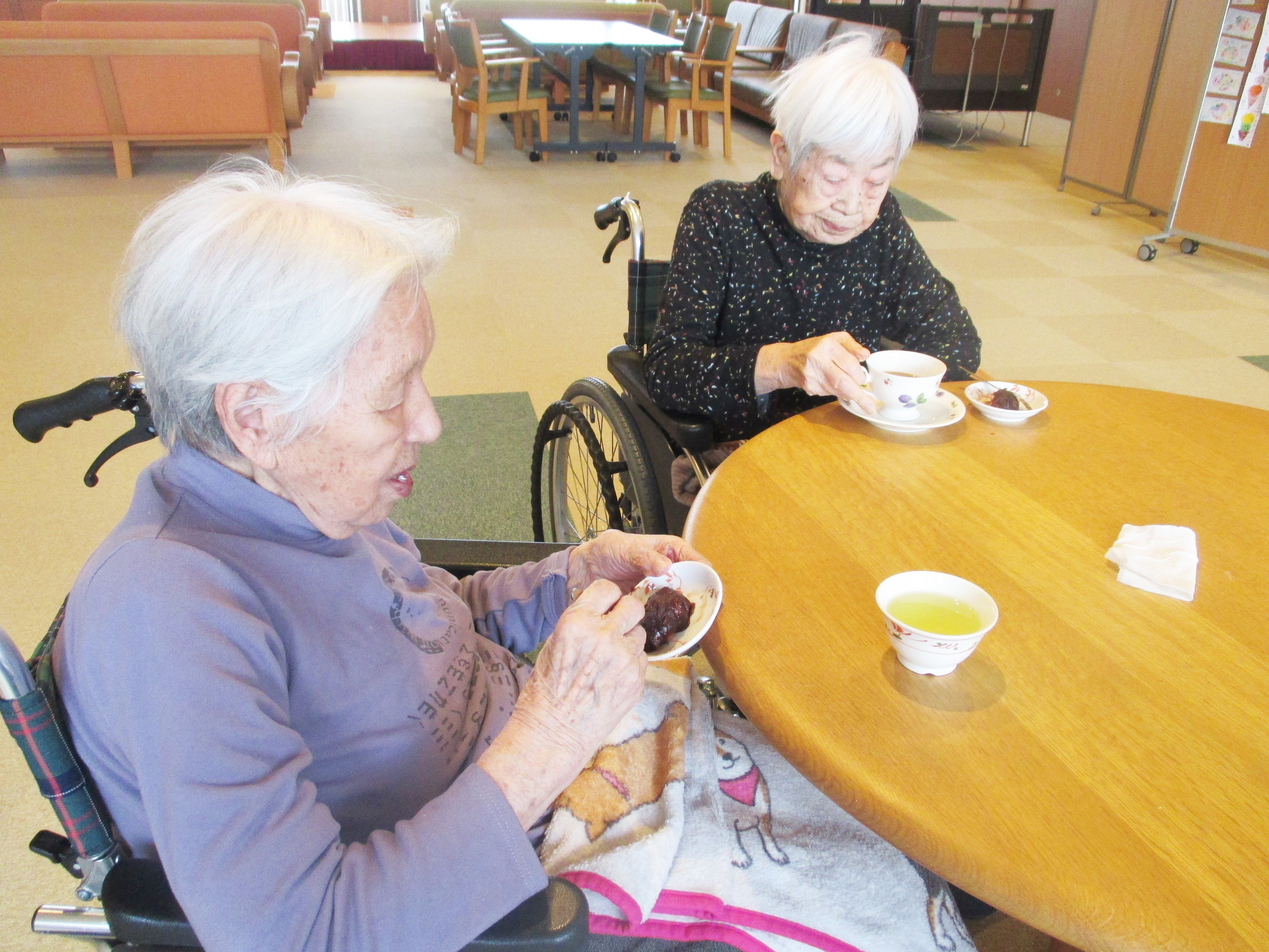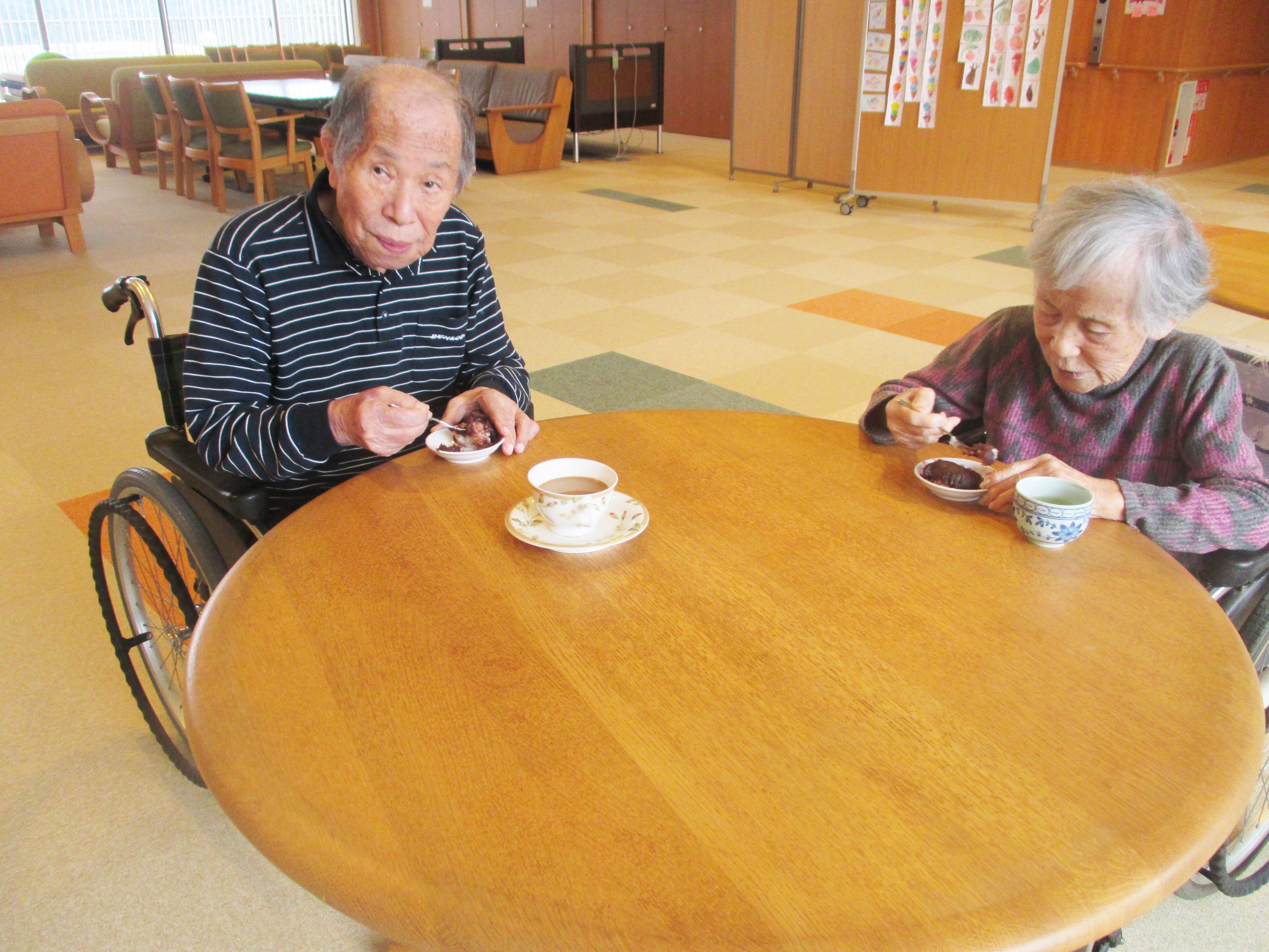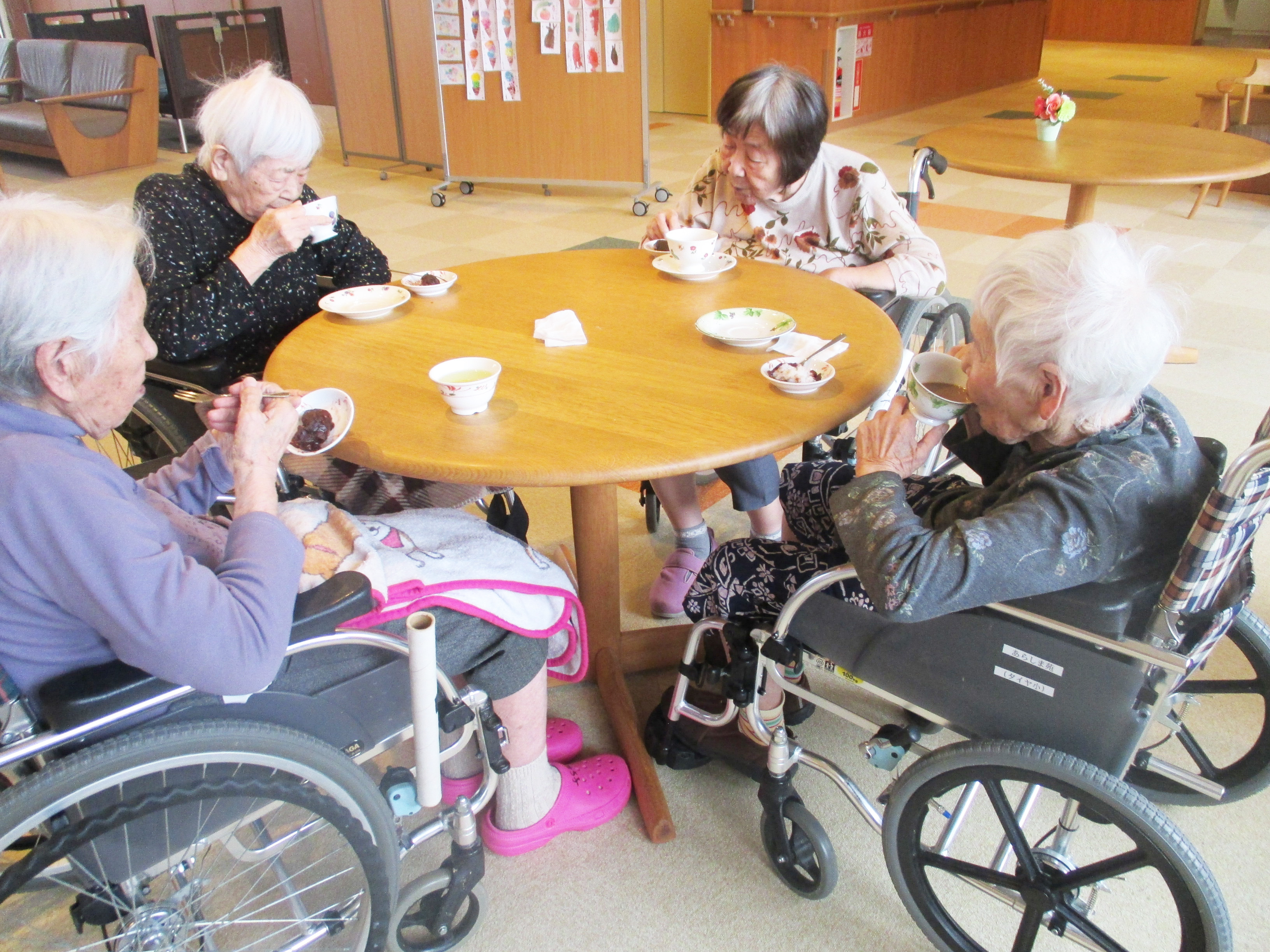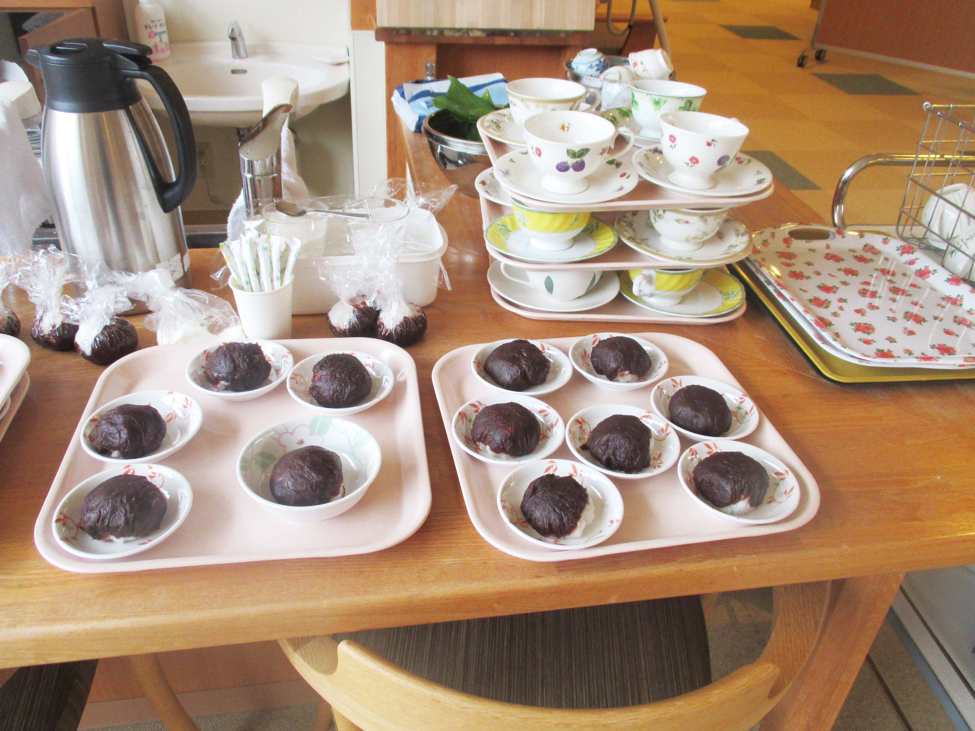 2025年10月30日 | あらしま苑喫茶季節のおやつ恒例行事特別養護老人ホームあらしま苑では毎月、お茶や季節のおやつを楽しんで頂く喫茶を開催しています。10月24日の喫茶では日本茶とおはぎをご提供しました。今回のおはぎは、ごはんにさといもを混ぜて柔らかく仕上げました。栄養部によって食べやすいよう工夫されたおはぎは好評で皆さま「おいしい!」と喜ばれていました。これからもあらしま苑では季節をお楽しみいただけるような喫茶イベントを開催していきたいと思います。特別養護老人ホーム あらしま苑住所:三重県鳥羽市安楽島町1075-58施設詳細はこちら