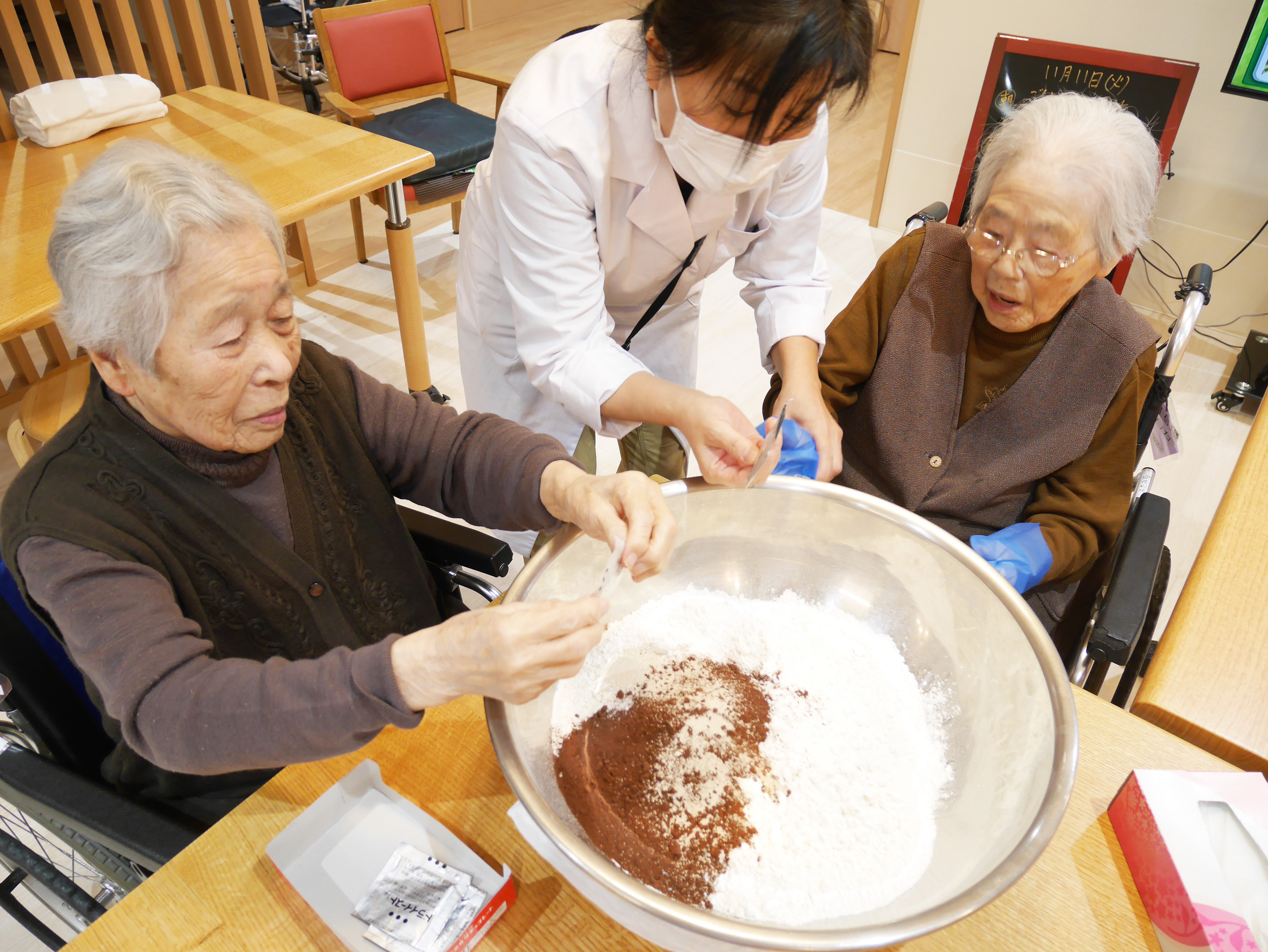 2025年11月14日 | ふたみ苑チョコパンパン作り令和7年11月11日ふたみ苑にて、今月のパンとして「チョコパン」を作りました。生地にココアを混ぜ、チョコレートを中に入れ、パンの上にも乗せて焼きました。中に入れたチョコレートは溶けて柔らかく、上に乗せたチョコレートはザクザクした食感で、今月も大好評でした。来月は、メロンパンを作る予定です。特別養護老人ホーム ふたみ苑住所:三重県伊勢市二見町三津1201-68施設詳細はこちら