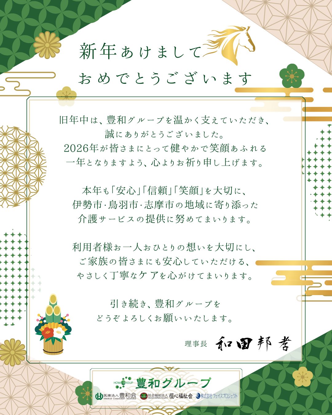 本年も豊和グループは、地域の皆さまとのつながりを大切にしながら、安心してご利用いただける介護サービスを提供してまいります。